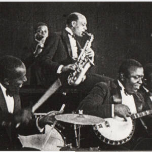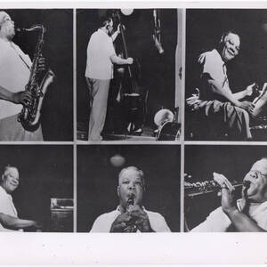 Adrien Terme à la trompette. En bas, 'Couesnon S.A. Paris'. Orchestre 'Kid Ory Original Creole Jazz-Band', années 20. Orchestre 'Kid Ory Original Creole Jazz-Band', Joe Oliver et Louis Armstrong (à genoux), salle de spectacle, années 20. Kid Ory au trombone. The Farmingdate High School Dance Band (U.S.A). Ray Ventura. Louis Armstrong and his all Stars. De gauche à droite, Cozy Cole (drums), Jack Teagarden (trombone), Louis Armstrong (trumpet), Arvell Shaw (string bass), Barney Bigard (clarinet) et Earl Hines (piano). 26 Août 1955. Sydney Bechet, six poses. The Nat Brusiloff Novelty Jazz Band, avec Tony Parenti (clarinette). Années 30. Maxim Saury à la clarinette, salle de spectacle. En bas, 'Maxim Saury Photo:X' et 'Ducretet Thomson'. Jane Pierly. En haut 'Disques Columbia', en bas 'Jane Pierly Studio Piaz'. Bernard Zacharias au trombone. En bas, 'Couesnon S.A. Paris' et 'Studio Staval'. Pills et Tabet. En haut 'Exclusivité Disques Columbia', en bas 'Studio Piaz Paris', 'Pills et Tabet'. Georges Milton. En bas 'Georges Milton', 'Exclusivité Disques Columbia', 'Studio Piaz Paris'. Wal-Berg (Voldemar Rosenberg). En bas 'La Voix de son Maitre', 'Disques Columbia' et 'Wal-Berg'. Don Byas. En bas, 'Don Byas exclusivité des disques Vogue'. Marcel Dumont au trombone. En haut 'Couesnon S.A. Paris'. Nelson Williams à la trompette. En haut, 'Couesnon S.A. Paris'. Philippe Brun à la trompette. En haut, 'Couesnon S.A. Paris'. Peanuts Holland à la trompette. En bas, 'Peanuts Holland joue sur Couesnon'. André Réwéliotty et son Orchestre, salle de spectacle. En bas, 'André Réwéliotty et son Orchestre Exclusivité des disques Vogue'. Jean Wetzel à l'harmonica. En bas, 'Jean Wetzel'. Benny Vasseur au trombone. En bas 'Benny Vasseur' et logo 'Henri Selmer Paris Instruments de Musique'. Raymond Fonsèque au 'trombonium', lors de la 'Nuit du Jazz', salle Wagram en 1965. Henri Texier à la contrebasse, Toulouse, 1977. Signature sur la photo. En bas 'Henri texier'. Maxim Saury à la clarinette. En bas, 'L'ambiance des caves avec Maxime Saury et son orchestre dans La Cave à Pilou'. Orchestre de Maxim Saury au Vieux Comombier, été 1952. Pierre Seran, Raoul Thiébaut, Marcel Bornstein, Maxim Saury, Raymond Fonsèque, Roland Audiret. Maxim Saury à la clarinette au Vieux Colombier. Trois autres musiciens dont Pierre Seran.