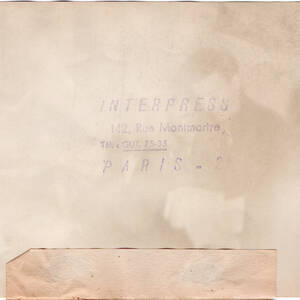 Orchestre non identifié, cabaret. Charles Trénet. En bas, 'Star 18 Champs Elysées Paris', 'Charles Trenet'. Alix Combelle avec un saxophone ténor. En bas, Ch. Vandamme, Les Mirages 70, Champs Elysées [Paris]. Orchestre dir. Raymond Legrand, 'à la radio', vers octobre 1936. André Dassary au micro (studio de radio), 1949. Orchestre non identifié, salle de concert. Orchestre d'Alix Combelle, salle de concert. Quatre saxophonistes, orchestre non identifié,salle de concert. La Huppa (Marcelle Capronnier). En bas, 'Jean Guy Bd Poissionnière Paris' et 'La Houppa'. Roger Khan. Erik Kroll, trompettiste de Jazz,1932. Yves Montand avec le jury du prix litteraire 'Les Ambasssadeurs' dont Robert Loup, Roger Giron et Paul Guth, 6 mai 1948. Orchestre de Ray Ventura, en extérieur (bord de mer). Orchestre de Ray Ventura, en extérieur. Orchestre 'Jack Hylton et ses Boys', années 30. Marcel Azzola et son orchestre. En haut 'Barclay Disques', en bas, 'Marcel Azolla et son orchestre' Lucienne Dugard (Noëlie Lucienne Rose Gros). En bas, 'Le Studio, 5, rue Pierre-Haret Paris'. Portrait; Sidonie Baba (Ève Solange Terrasson-Duvernon). En bas, 'Studio Intran'. Février 1934. Fernandel. En bas, 'Fernandel Photo R. Tomatis 17'. Pierre Mingand. En bas 'Studio Harcourt', 94', 'Pierre Mingand'. Orchestre de Tangos Bazzanella, Frankfurt am Main, février 1931 (affiche). Xavier Lemercier. Signature Malent (?) Paris. En bas, Disques Odéon, Xavier Lemercier des Folies-Bergère. Portrait non identifié. Restaurant ou cabaret. Robert Burnier. En bas, 'E 567' et 'Studio Paramount'. Tramel. En bas, 'Photo Sartony', 'Disques Odéon', 'Tramel Le Bouif'. Albert Huard et son orchestre. En bas, 'Disques Odéon', 'Albert Huard le virtuose accordéoniste et son fameux orchestre'. Edith Méranne ou Méra (Edith-Claire Zeibert), en 1924, scène de théatre. Bach (Charles-Joseph Pasquier). SIgnature sur la photo. En bas Edit. R. Tricot, No 46 Les vedettes de l'écran, Bach. Logo FOTAC.