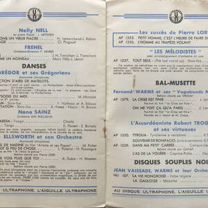 Ed. Françis Salabert. Columbia, Cie Fse du Gramophone. Disques ODEON. VOGUE, The Greatest Jazz Catalogue in the World. 78-33-45 rpm. Disques Ultraphone. Répertoire 'Ultravox'. Disques DECCA. Esquire Records. Discos Electricos REGAL. PARLOPHONE. PARLOPHON El Disco Sonoro. Columbia. Disques Polydor Brunswick. Polydor Brunswick Jap.