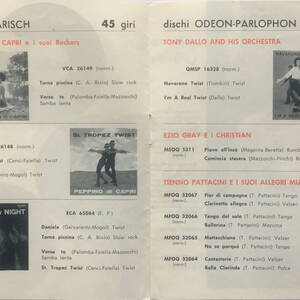 ODEON, Parlophon. Ricordi. Philips, Mercury, Fontana, Melodicon. JUKE BOX. CARISH, Parlophon, ODEON. FONIT. DECCA, London, TELEFUNKEN. Fontana, Philips. RCA Italiania. CETRA.