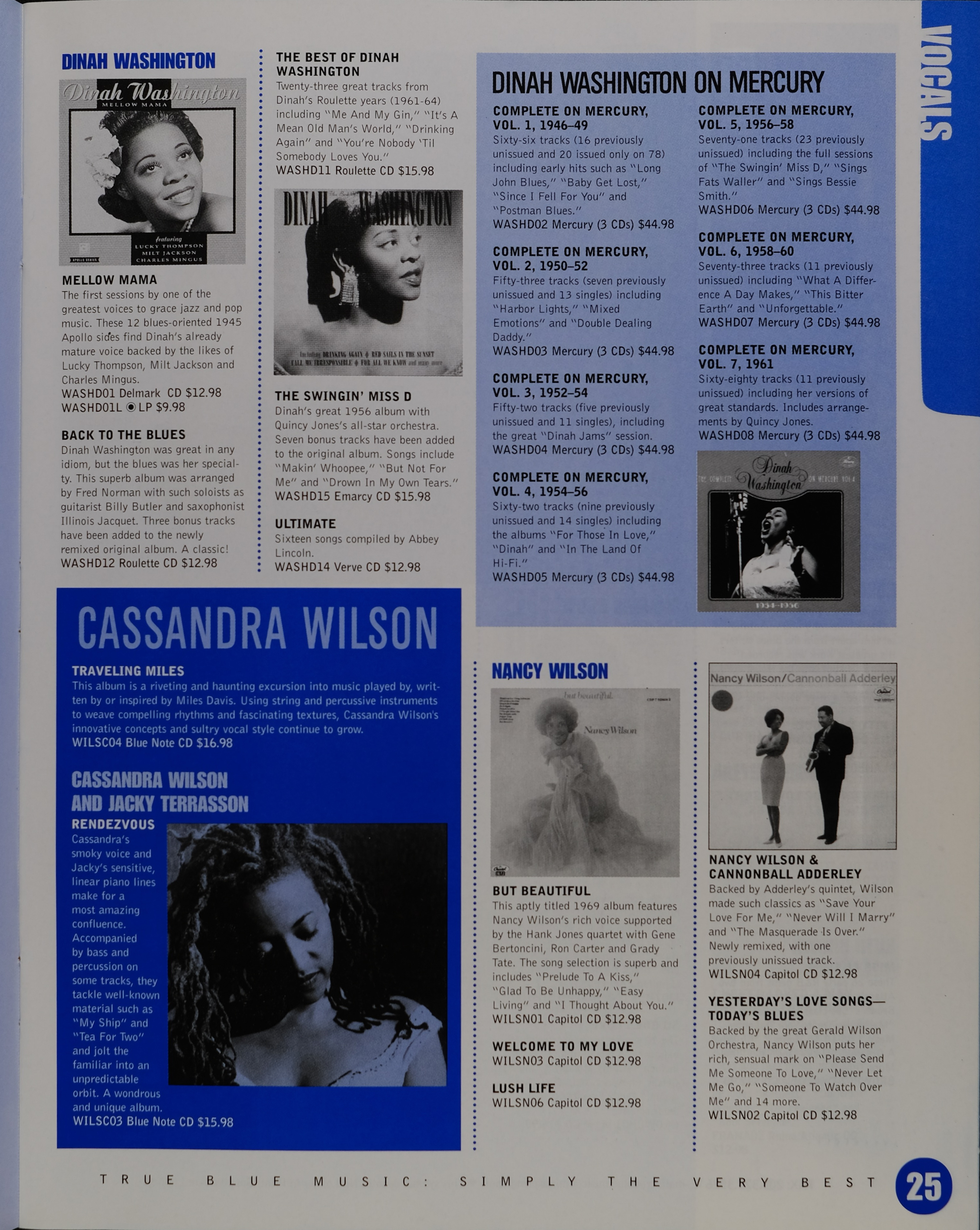 | irk-pub-mus-2-17 | True Blue Music, fall 1999. | Catalogue du magasin True Blue Music. | Magazine, 22cm X 27,5cm, 64 pages. Photos noir et blanc des pochettes, contient un bulletin de commande. | USA, 1999. | 84 | ||