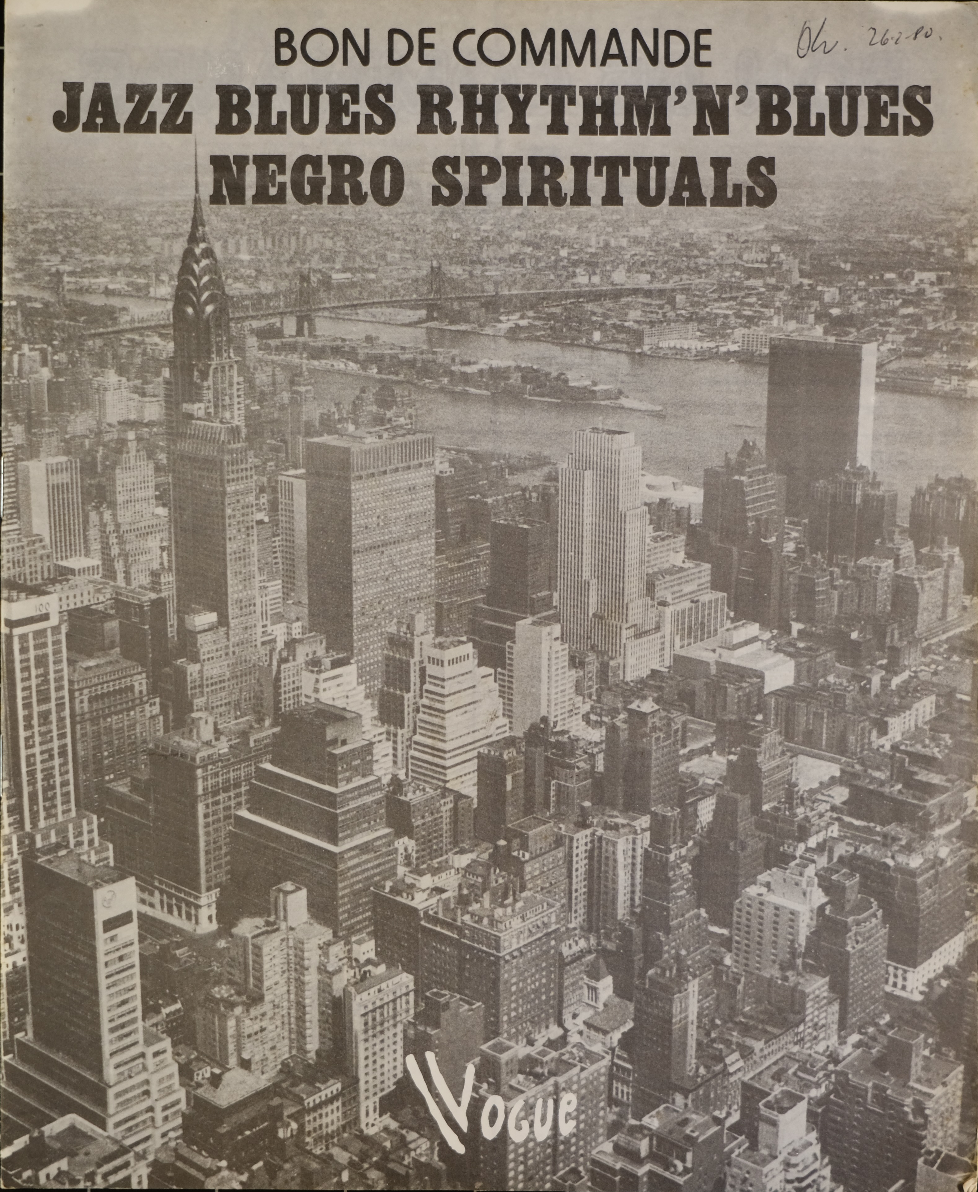 | irk-pub-mus-2-6 | Bon de commande Vogue. | Bon de commande Vogue: Jazz Blues Rhythm'n'Blues Negra Spirituals. | Brochure 24cm X 28cm, 12 pages. | France, années 60. | 84 | ||