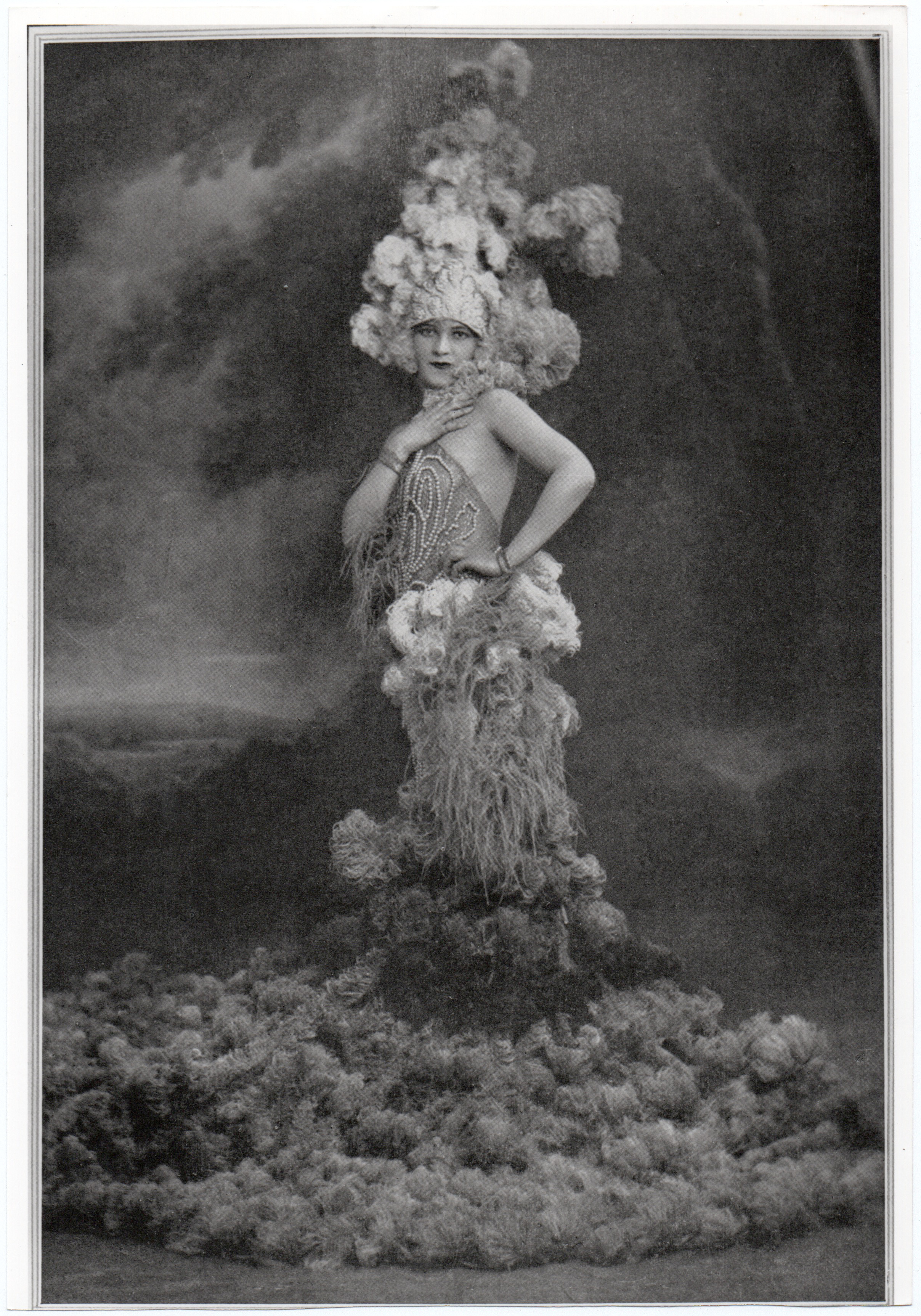 | obr-docp-phot-2-27 | Auteur inconnu. | Edith Méranne ou Méra (Edith-Claire Zeibert), en 1924, scène de théatre. | Photographie, tirage argentique récent, papier brillant, format 20cm X 29cm. | Lieu non identifié. Légende dactylographiée au verso, 'Edith Méranne dans le tableau 'Les Grains de Beauté', Revue Olympique 1924, costume de Jean Le Seyeux, nouvelle version de la revue 'On dit ça' de Jacques Charles, Casino de Paris. Elle sera la vedette en 1934, sous le nom de Edith Méra, de la revue 'Femmes en folie' aux Folies-Bergère. | 32 | ||