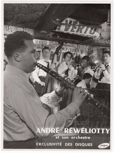 obr-docp-phot-3-8Auteur inconnu.André Réwéliotty et son Orchestre, salle de spectacle. En bas, 'André Réwéliotty et son Orchestre Exclusivité des disques Vogue'.Photographie, tirage argentique, papier brillant, format 17.8cm X 24cm. Image non datée, lieu non identifié. Publicité pour les disques Vogue.32