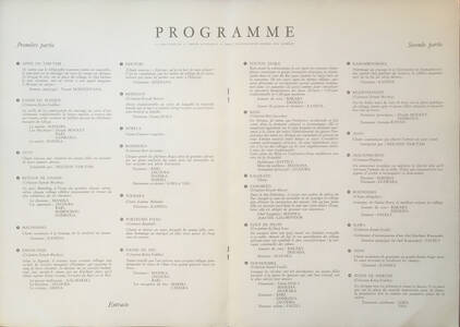 obr-prog-crt-2-2Duke Ellington, Genève 1950.Programme du concerts de Duke Ellington, Victoria hall, Genève, le 3 mai 1950.Livret 5 pages avec couverture cartonnée, recouverte de papier cristal. Format 24cm X 32cm. Photo de Duke Ellington sur la couverture, Jules Borkon présente Duke Ellington et son orchestre. Présentation de Duke Ellington, programme du concert (deux parties). Publicités. Les Productions Parisiennes 'Arts et Spectacles', 33 Av. des Champs-Elysées, Paris. Une ou trois pages manquantes. Même couverture que obr-prog-crt-1-3 (1950) et obr-prog-crt-2-1 (1948).Suisse, 1950.121