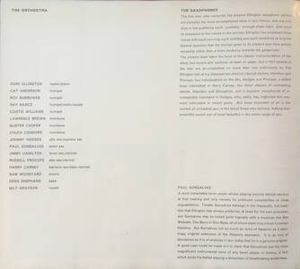 obr-prog-crt-2-7Duke Ellington, Paris 1958.Programme des concerts de Duke Ellington, TNP Chaillot, le 28 octobre 1958.Livret de 32 pages avec couverture cartonnée. Format 26cm X 27cm. Nombreuses photos des musiciens. Jules Borkon présente Duke Ellington et son orchestre. Biographie détaillée de Duke Ellington, et des musiciens. Programme du concert. Publicités.France, 1958, Programme dédicacé par Ray Nance, Cat anderson, Johnny Hodges, Harold Baker, Quentin Jackson, Jimmy Hamilton, Paul Gonsalves, Harry Carney, Jimmy Woods, Sam Woodyard, Ozzie Bailey.121