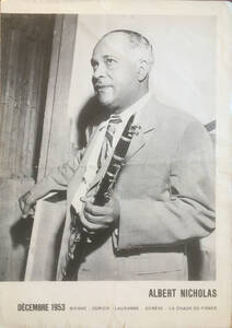 obr-prog-crt-2-5Albert Nicholas, Suisse, 1953.Programme des concerts d'Albert Nicholas, tournée en Suisse en décembre 1953.Plaquette 4 pages A4. Photo d'Albert Nicholas sur la couverture. Albert Nicholas - André Reweliotty et son Orchestre. Liste des villes, programme, liste des musiciens.Suisse, 1953.121
