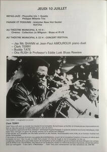 | obr-prog-crt-5-6 | Montauban 84, 3eme festival de Jazz. | Programme du festival de Jazz de Montauban, 2-7 juillet 1984. | Livret 16cm X 24cm, 24 pages. Programme, biographies et photographies en noir et blanc des musiciens. | France, 1984. | 121 | ||