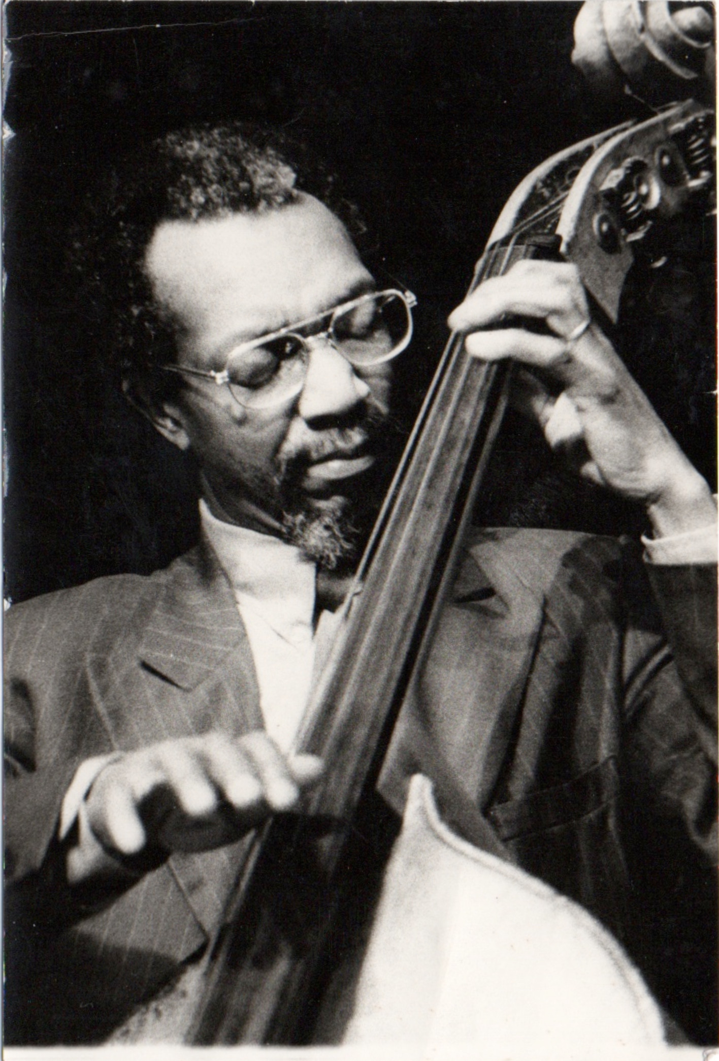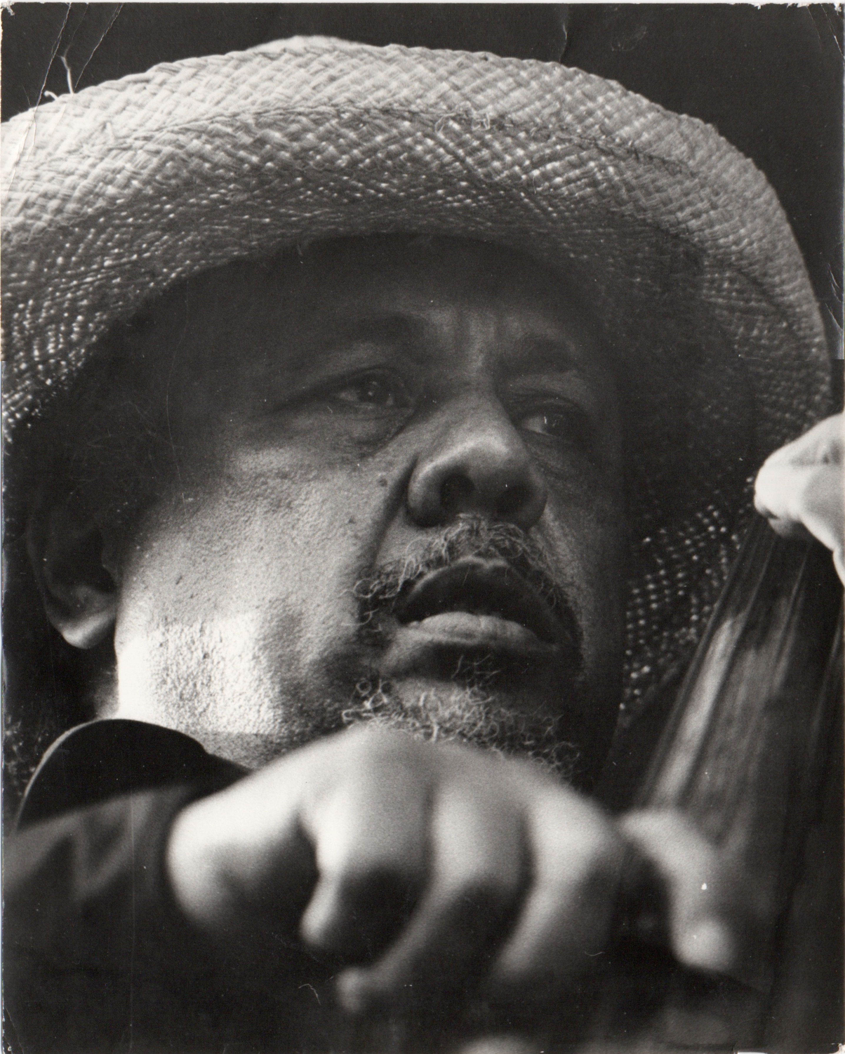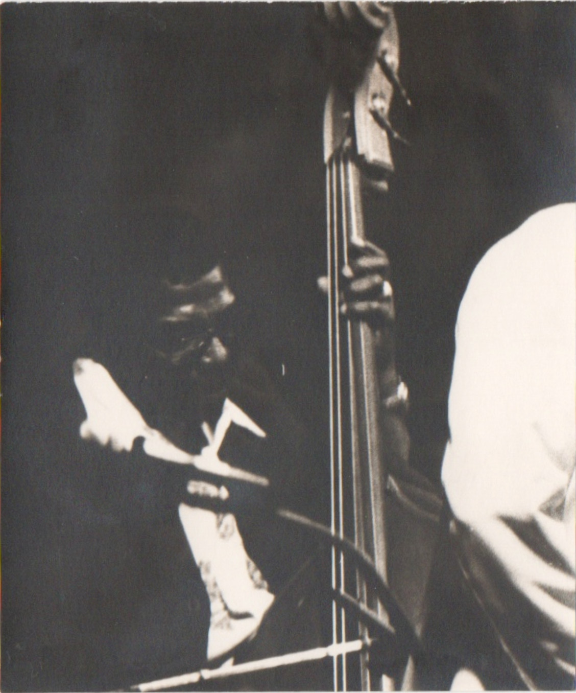 bwb-docp-phot-5-2 | Bernard W. Bismuth | Contrebassiste. Charles Mingus. | Tirage argentique, noir et blanc, cartoline semi-mat chamois, format 18cm X 24cm. | Lieu inconnu, date inconnue. | 316 | ||