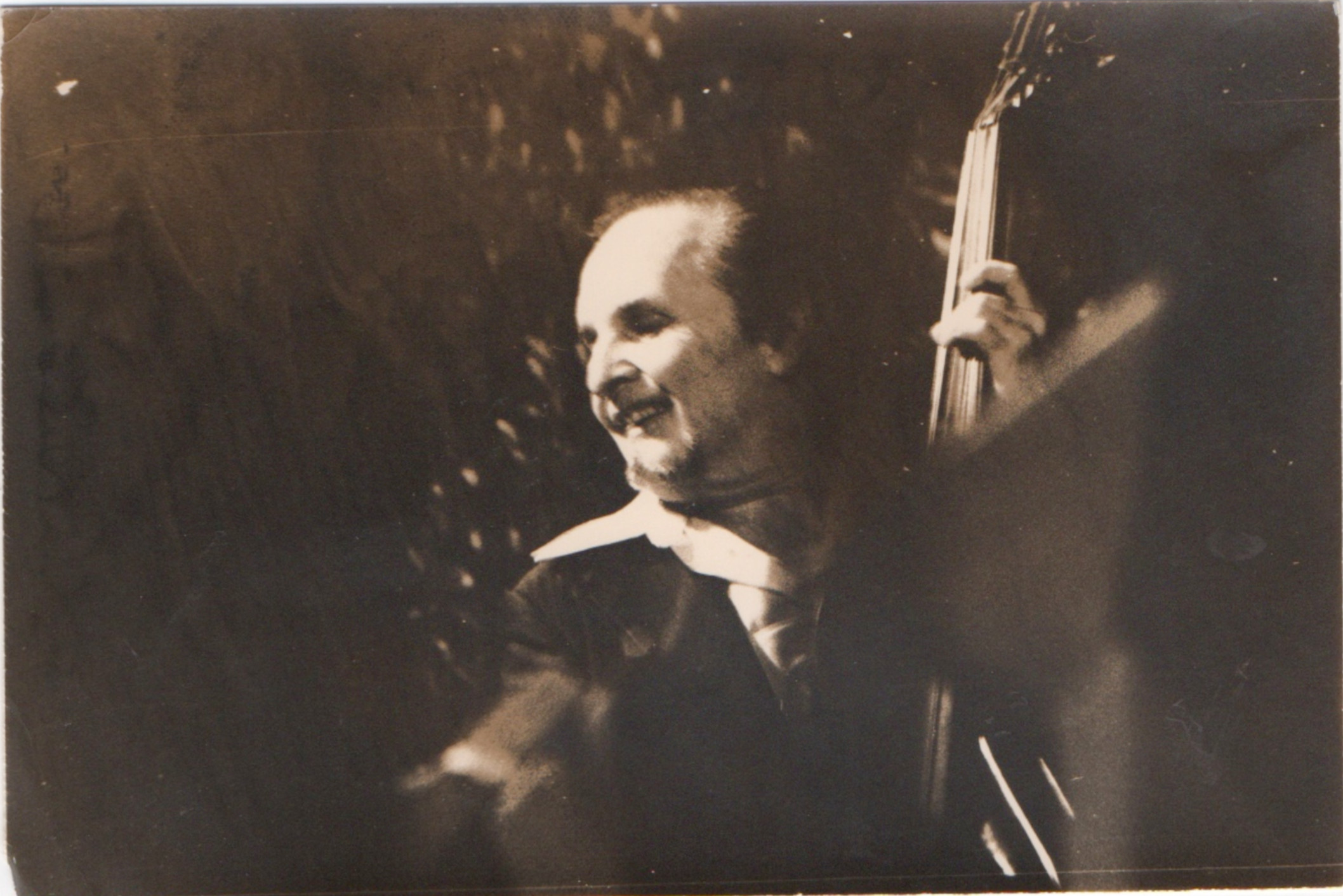 bwb-docp-phot-5-26 | Bernard W. Bismuth | Contrebassiste. | Tirage argentique, noir et blanc, papier brillant 'sépia', format 18cm X 24cm. | Lieu inconnu, date inconnue. | 316 | ||