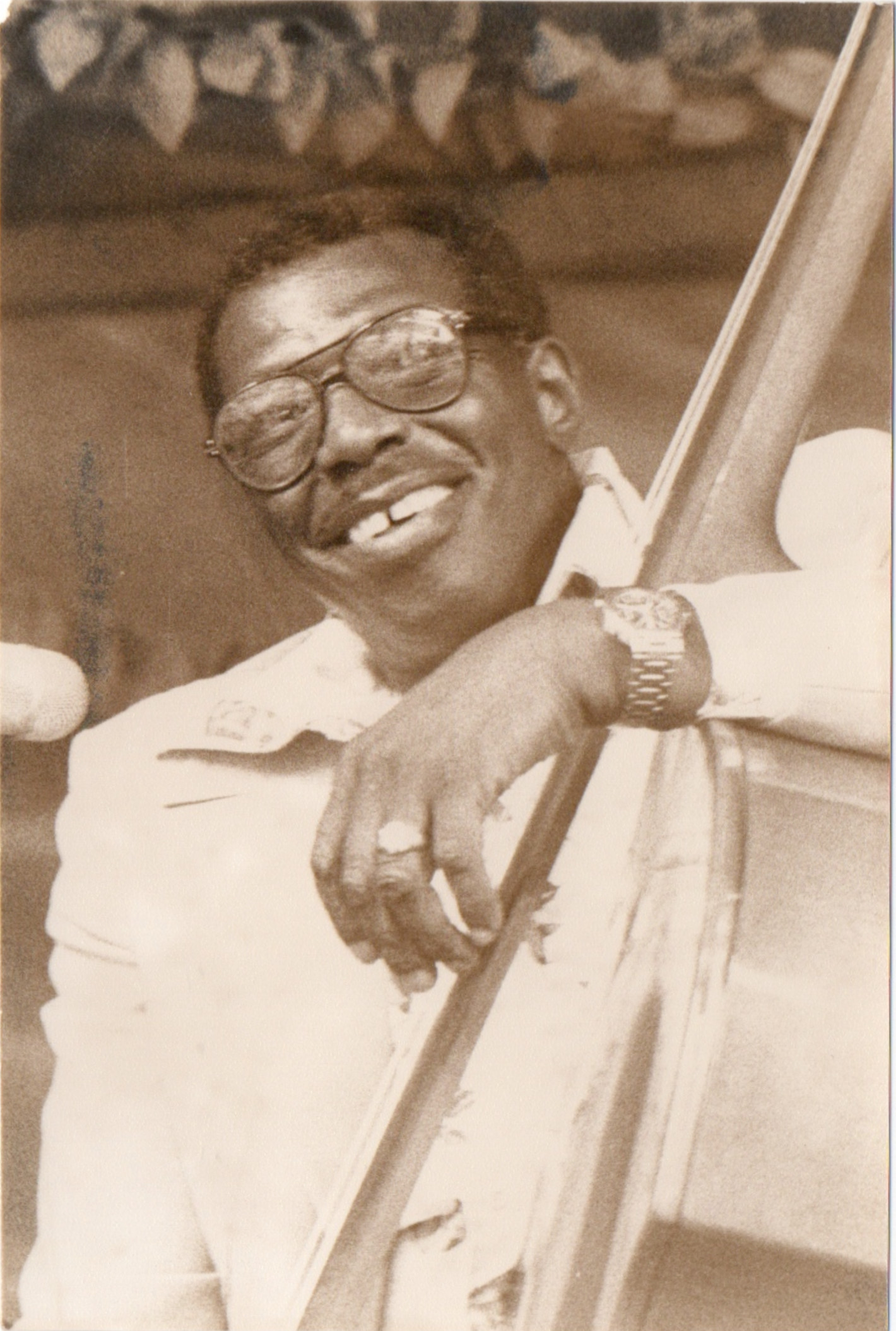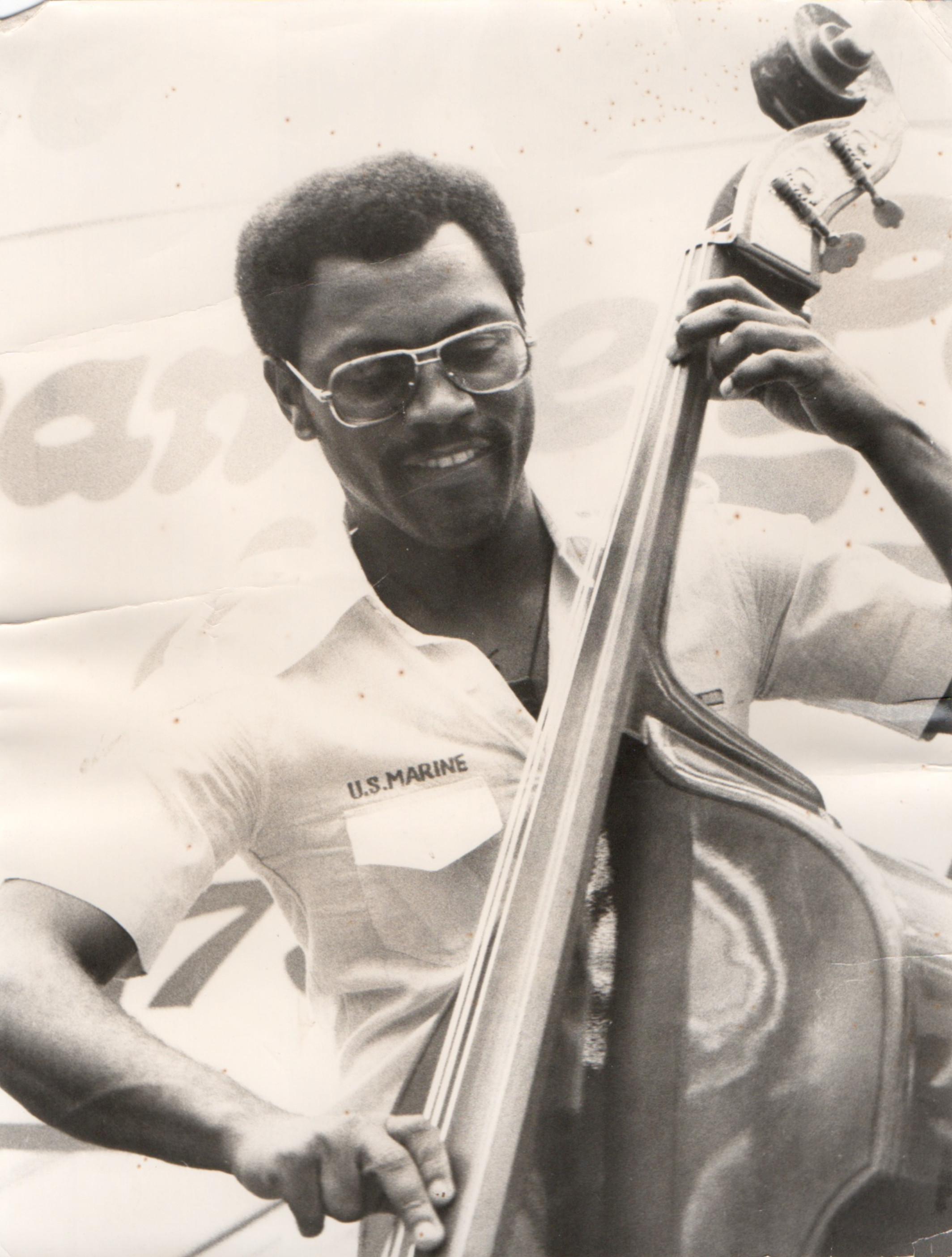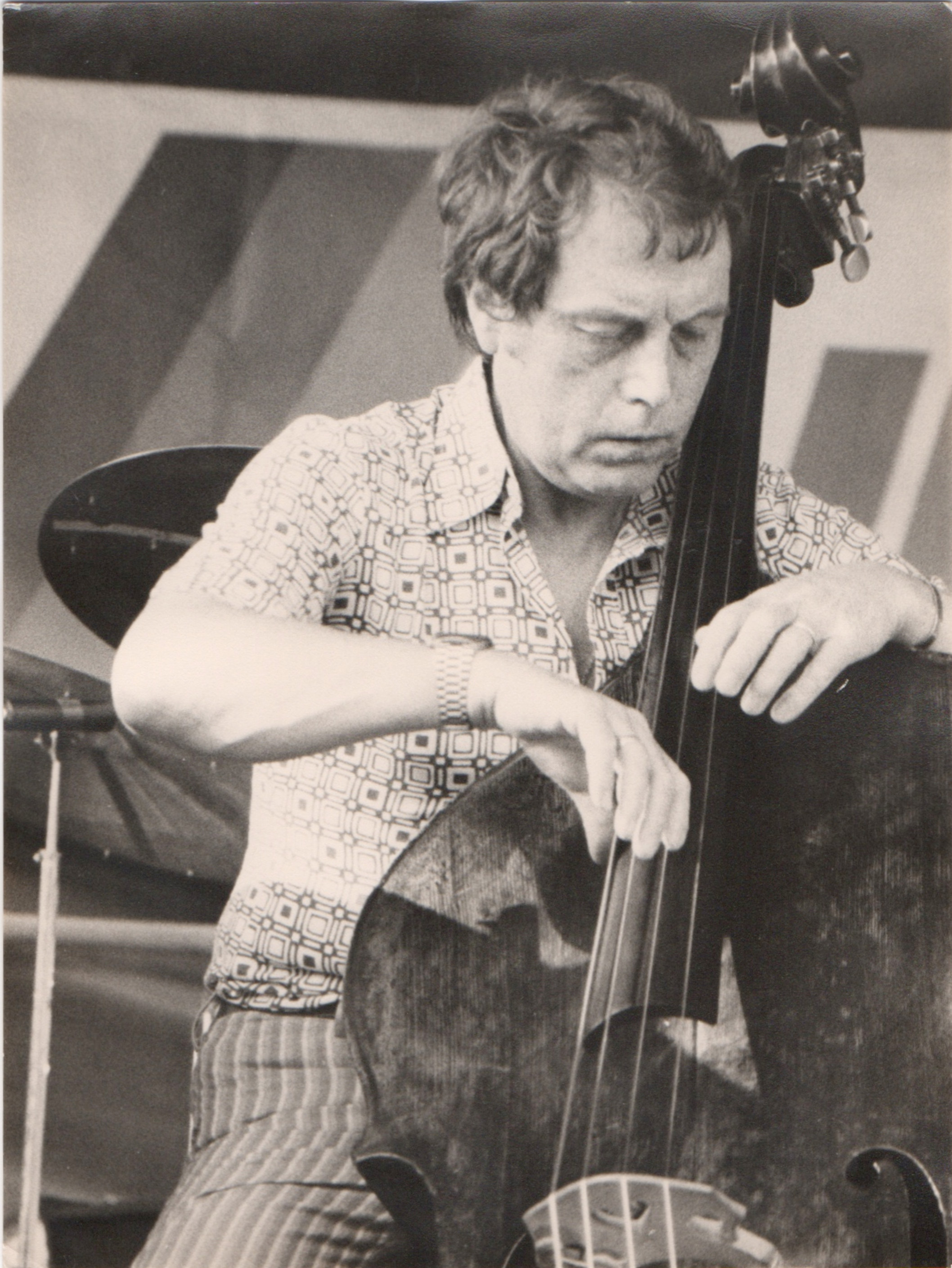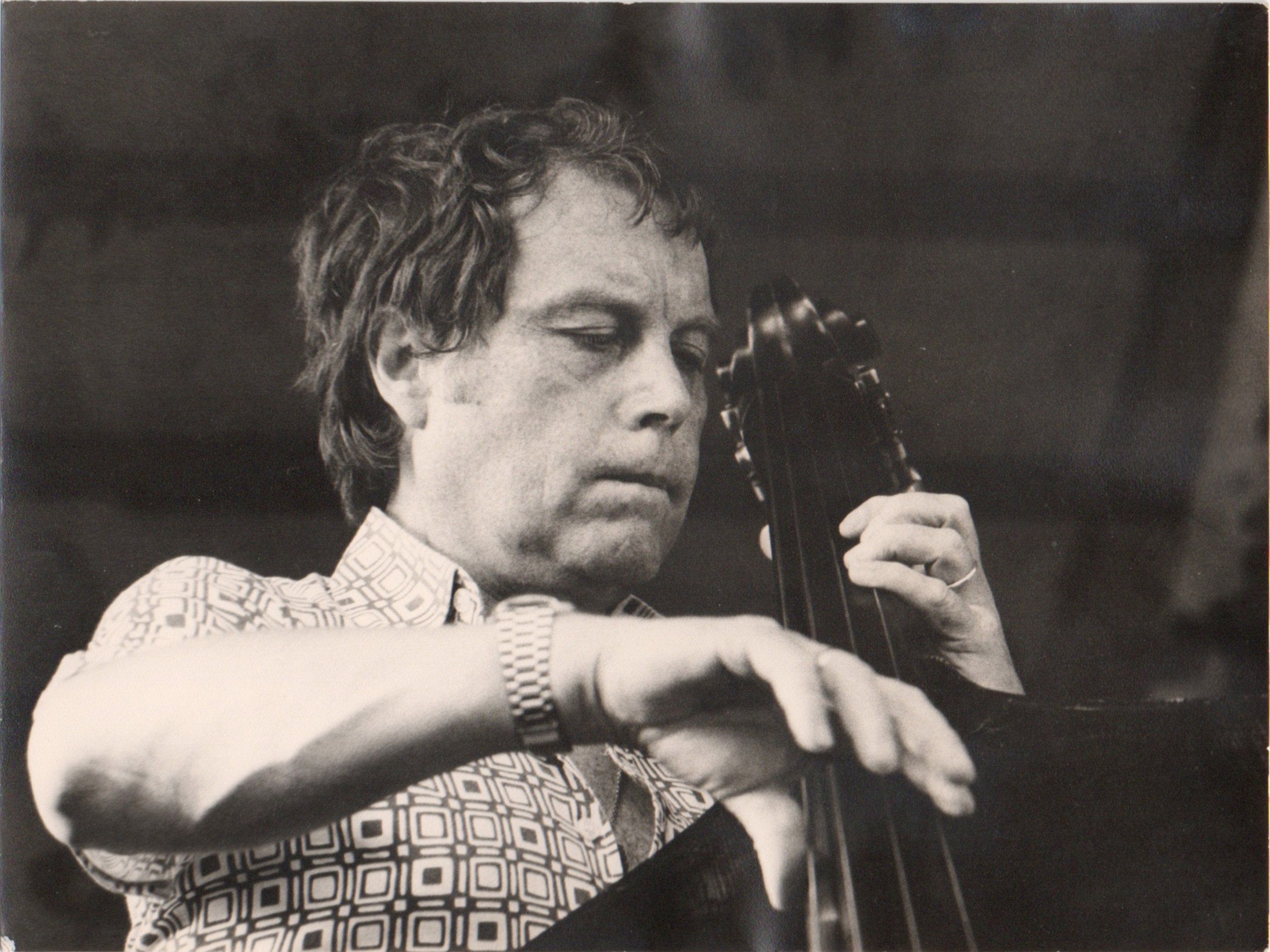 bwb-docp-phot-5-19 | Bernard W. Bismuth | Contrebassiste. Major Holley. | Tirage argentique, noir et blanc, cartoline semi-mat 'sépia', format 12cm X 18cm. | Lieu inconnu, années 70. | 316 | ||