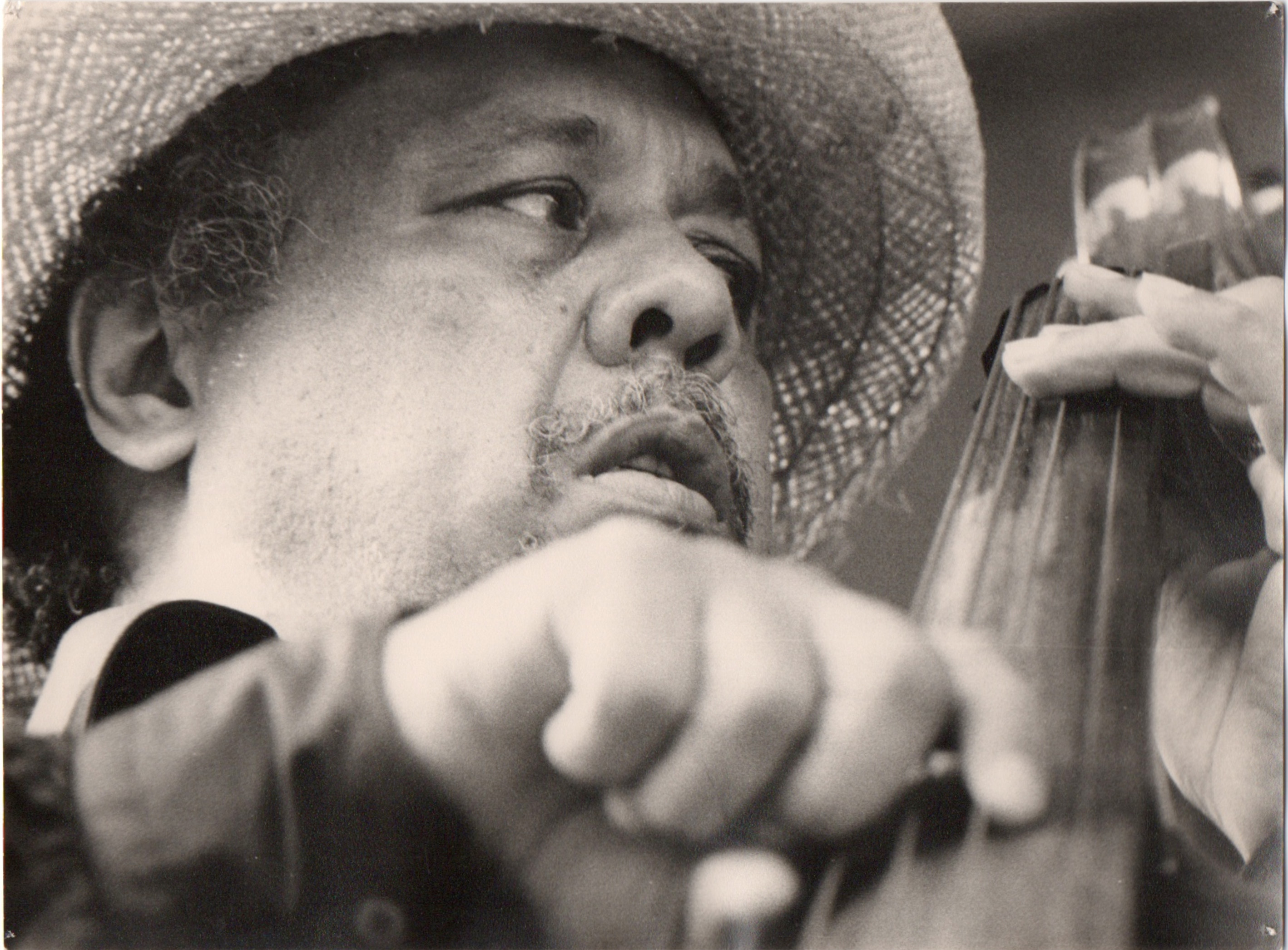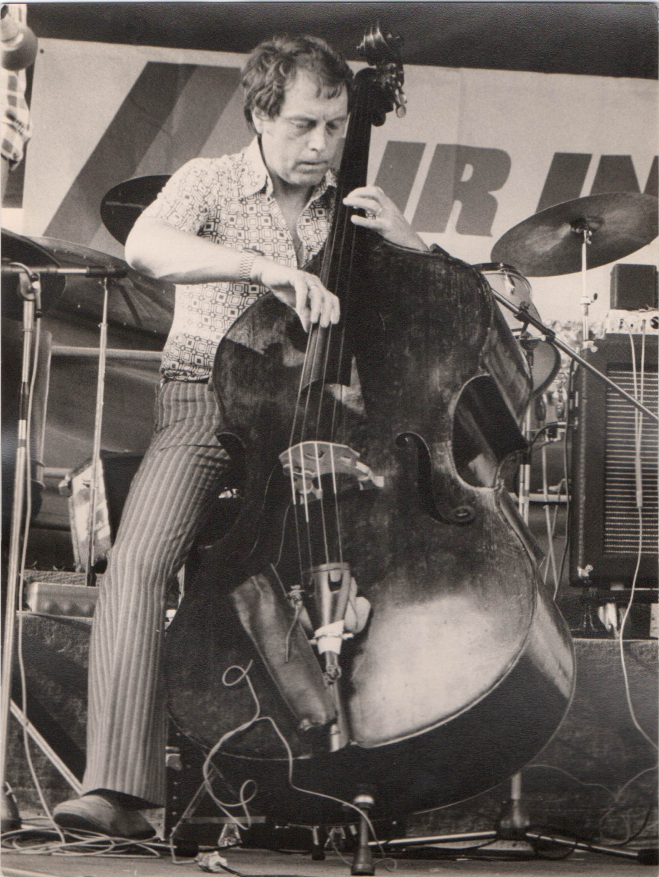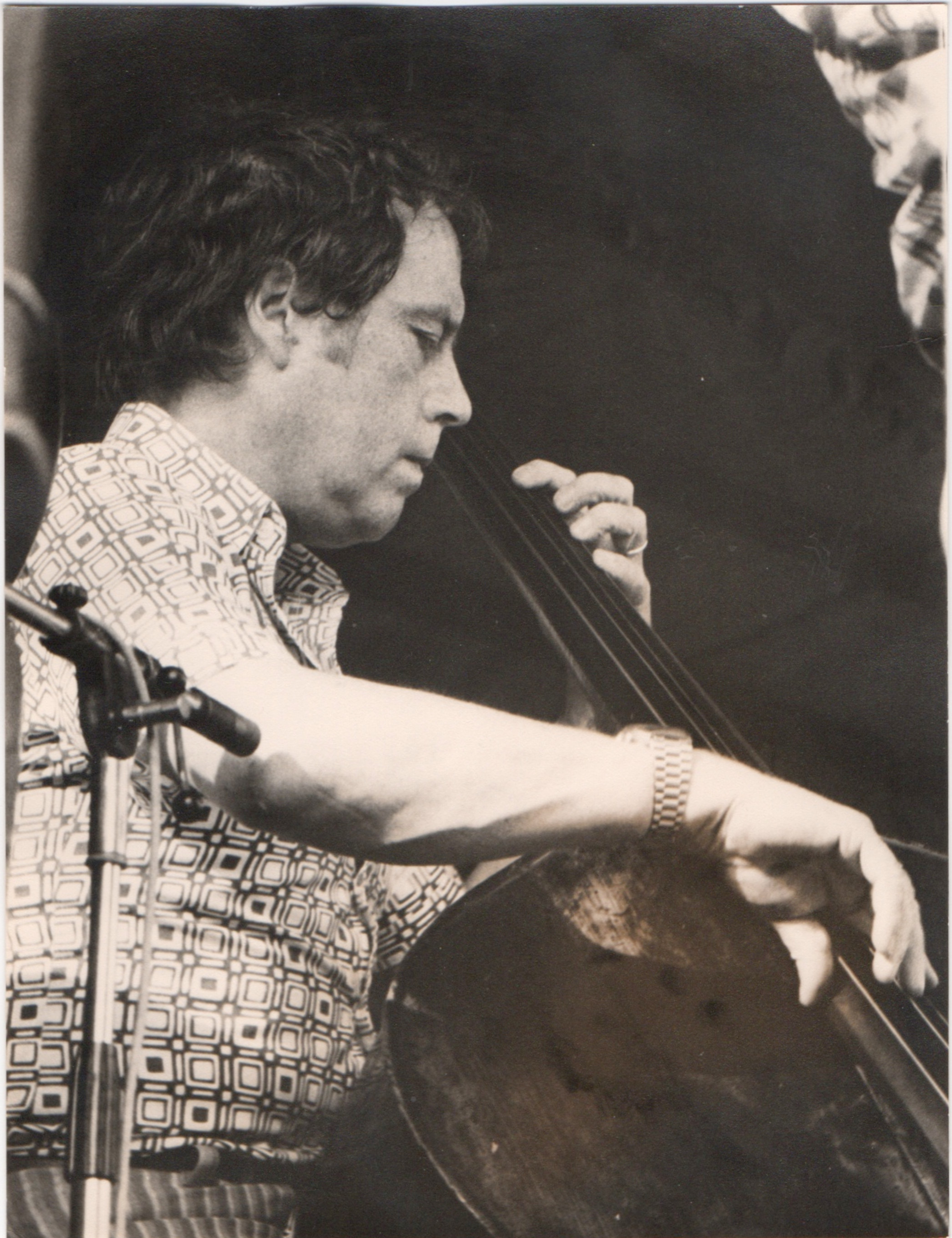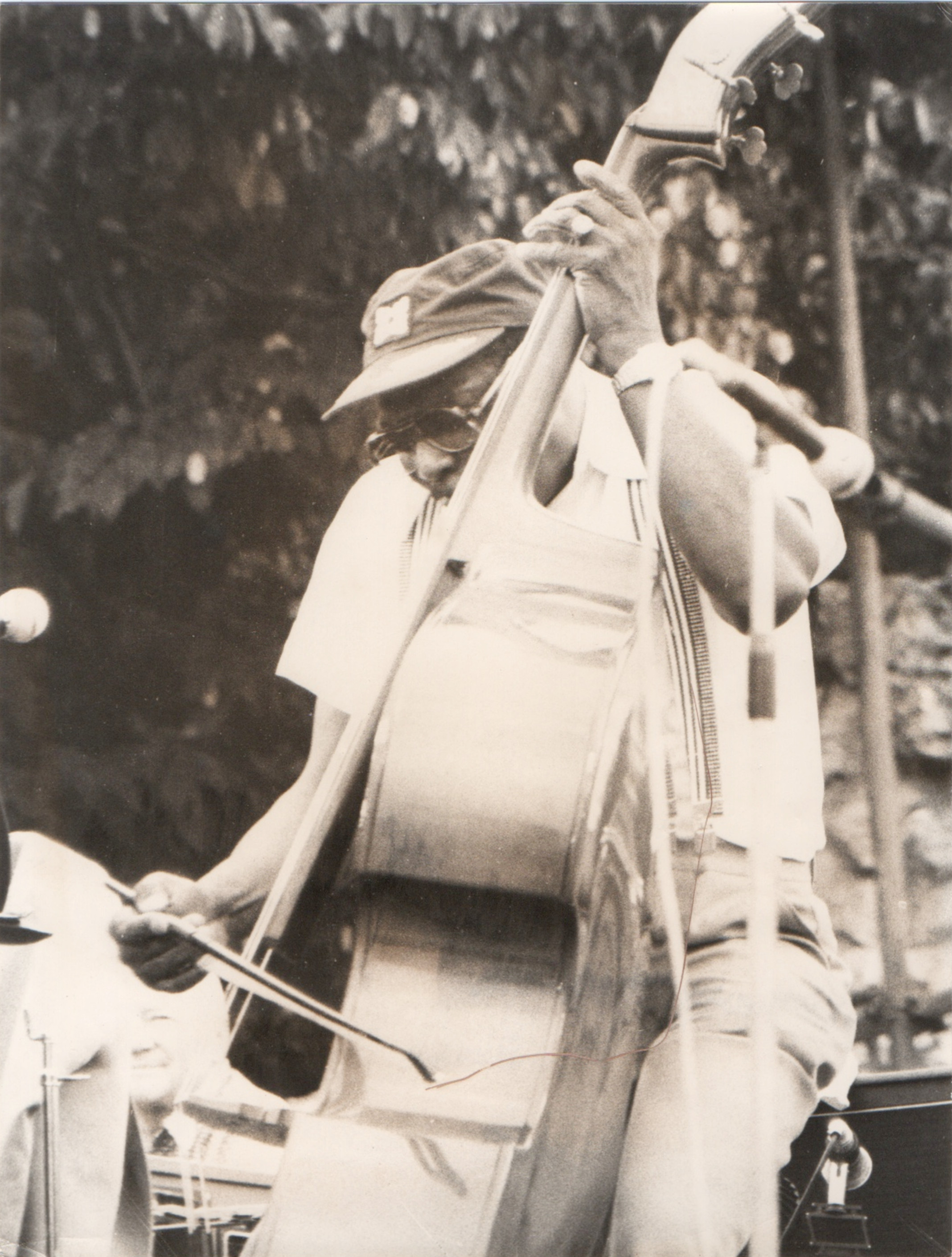 bwb-docp-phot-5-18 | Bernard W. Bismuth | Contrebassiste. Major Holley. | Lot de deux. Tirage argentique, noir et blanc, cartoline semi-mat 'sépia', un format 18cm X 24cm et un format 12cmX18cm. Plus un double 18cm X 24cm non viré. | Lieu inconnu, années 70. | 316 | ||