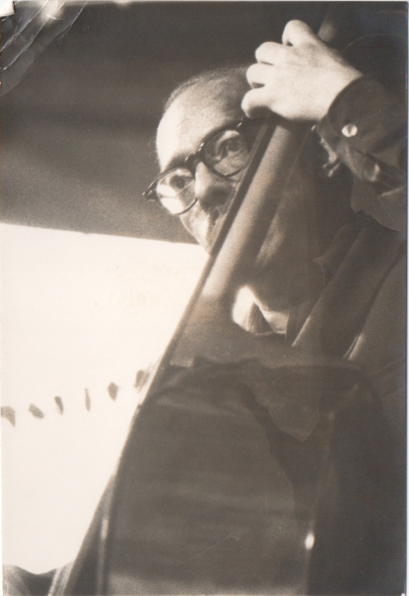 bwb-docp-phot-5-9 | Bernard W. Bismuth | Contrebassiste. | Tirage argentique, noir et blanc, papier brillant, format 12cm X 18cm. | Lieu inconnu, date inconnue. | 316 | ||