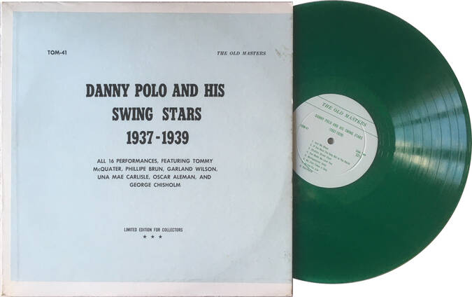 Octobre 2023 “Jazz Me Blues” Danny Polo And His Swing Stars. Disque 33t 30cm, TOM-41 (The Old Masters), vinyle vert translucide, édition limitée (USA, vers 1970). Les titres ont été enregistrés entre 1937 et 1939. Parmi les musiciens: Garland Wilson, George Chisholm, Oscar Aleman, Phillipe Brun, Tommy McQuater et Una Mae Carlisle.